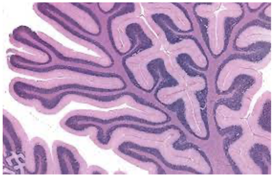 Vilken del av CNS syns i bild? A: Cerebellum B: Diencephalon C: Medulla spinalis D: Cerebrum E: Pons A