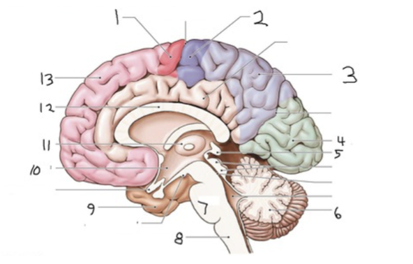 Vilken siffra markerar var det sitter viktiga autonoma centra för kontroll av andning, blodtryck och hjärtfrekvensreglering? (1..13)