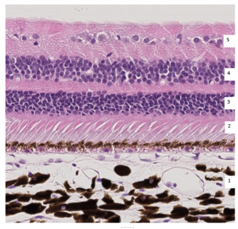 a) Vilken siffra markerar gangliecellerna? (1..5)