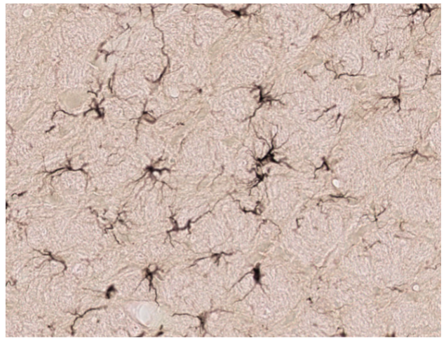 Vilka celltyper syns i ovan preparat från lillhjärnan och som är infärgad för GFAP (Glial fibrillary acidic protein)? (1p)