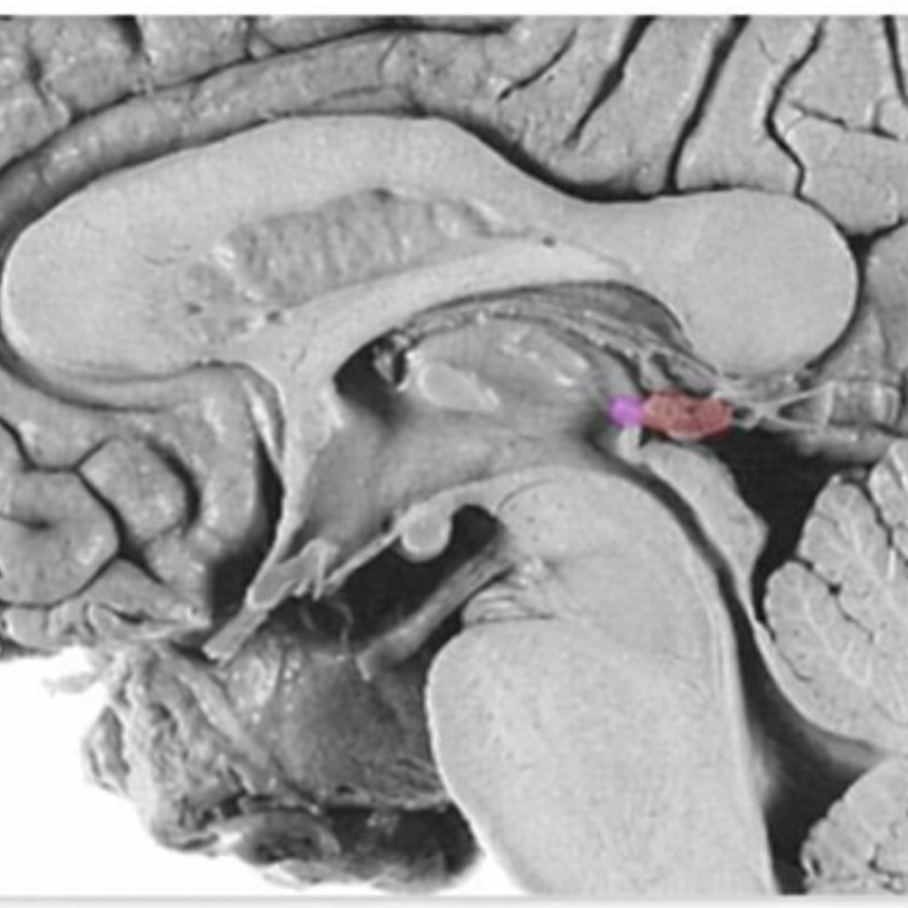 Klicka i mitten på fjärde ventrikeln i bilden nedan (1p) Gör ett klick i bilden Rätt svar ![[image-33.png]]