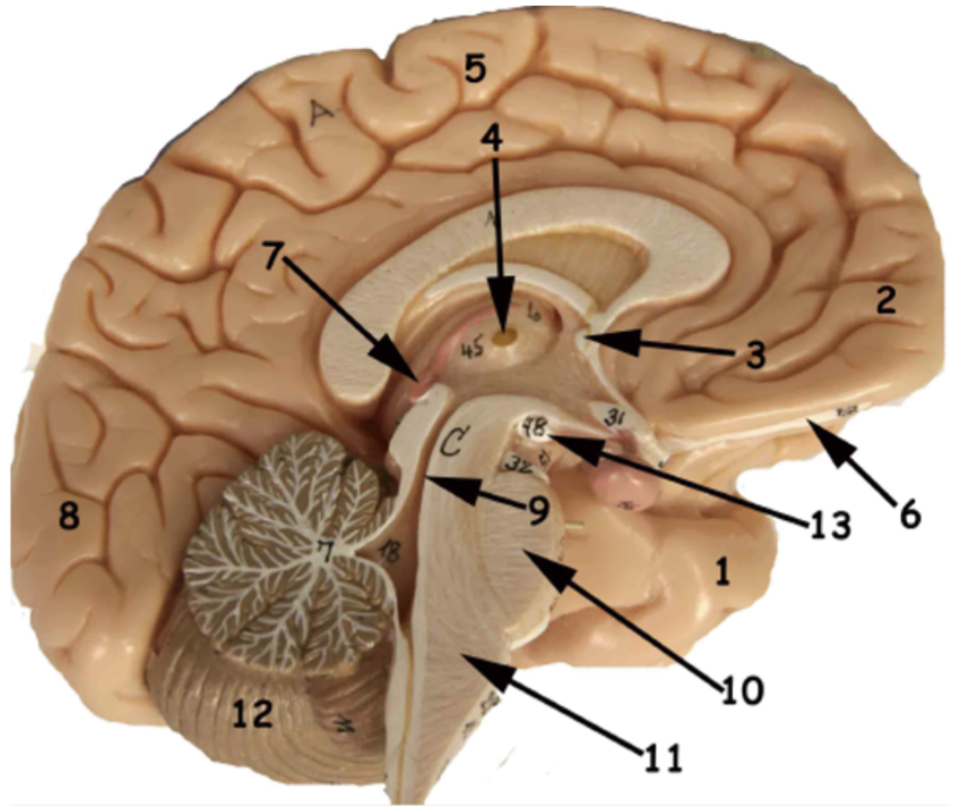 Vilken siffra motsvarar medulla oblongata? (1..13)
