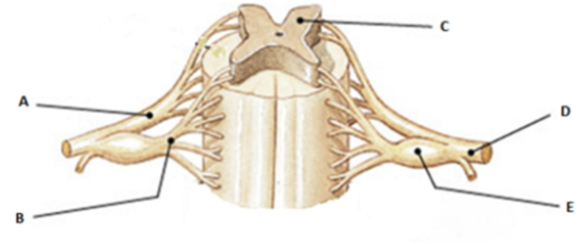 Vilken bokstav markerar radix anterius (ventralroten)? (A..E) A (1p)