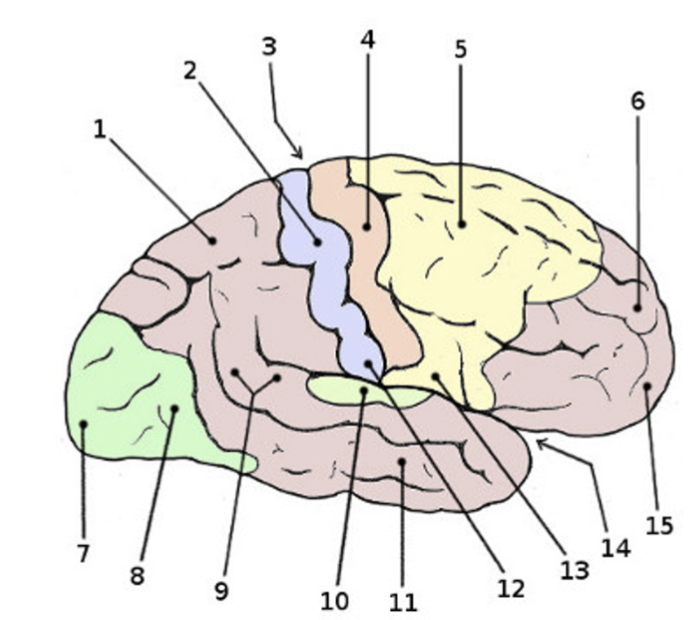 Vilken siffra markerar läget av motoriska homunculus? (1p)