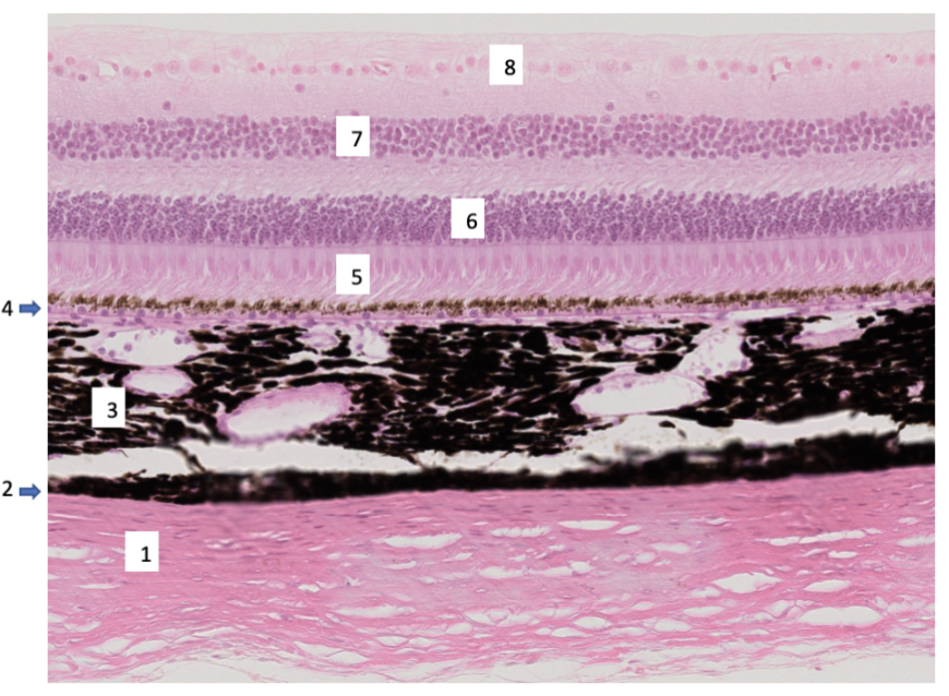 Bilden visar en del bakre ögongloben. Svara på frågorna genom att ange rätt siffra.