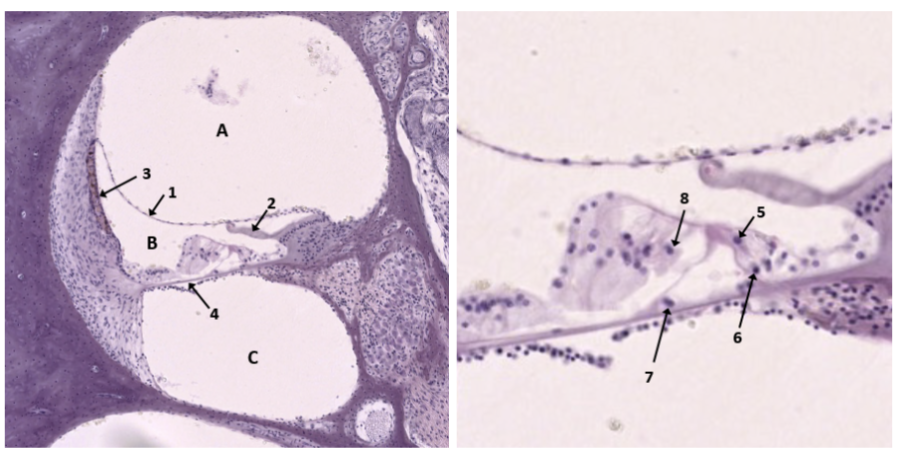 Vilken bokstav markerar ett utrymme med endolymfa?