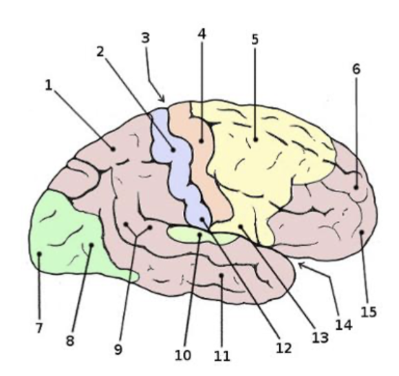 Vilken siffra markerar läget av pyramidbanans start (var dess nervcellskroppar sitter)? (1p)