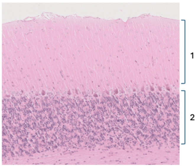 Purkinjecellernas dendriter Korncellernas cellkärnor 2 stjärncellernas cellkärnor