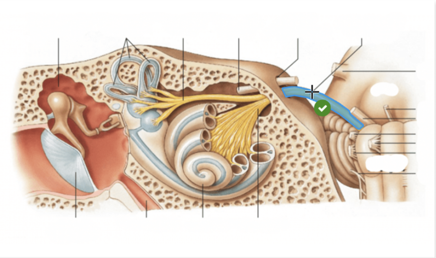 Markera Nervus vestibulocochelaris i bilden. (1p) Klicka på bilden
