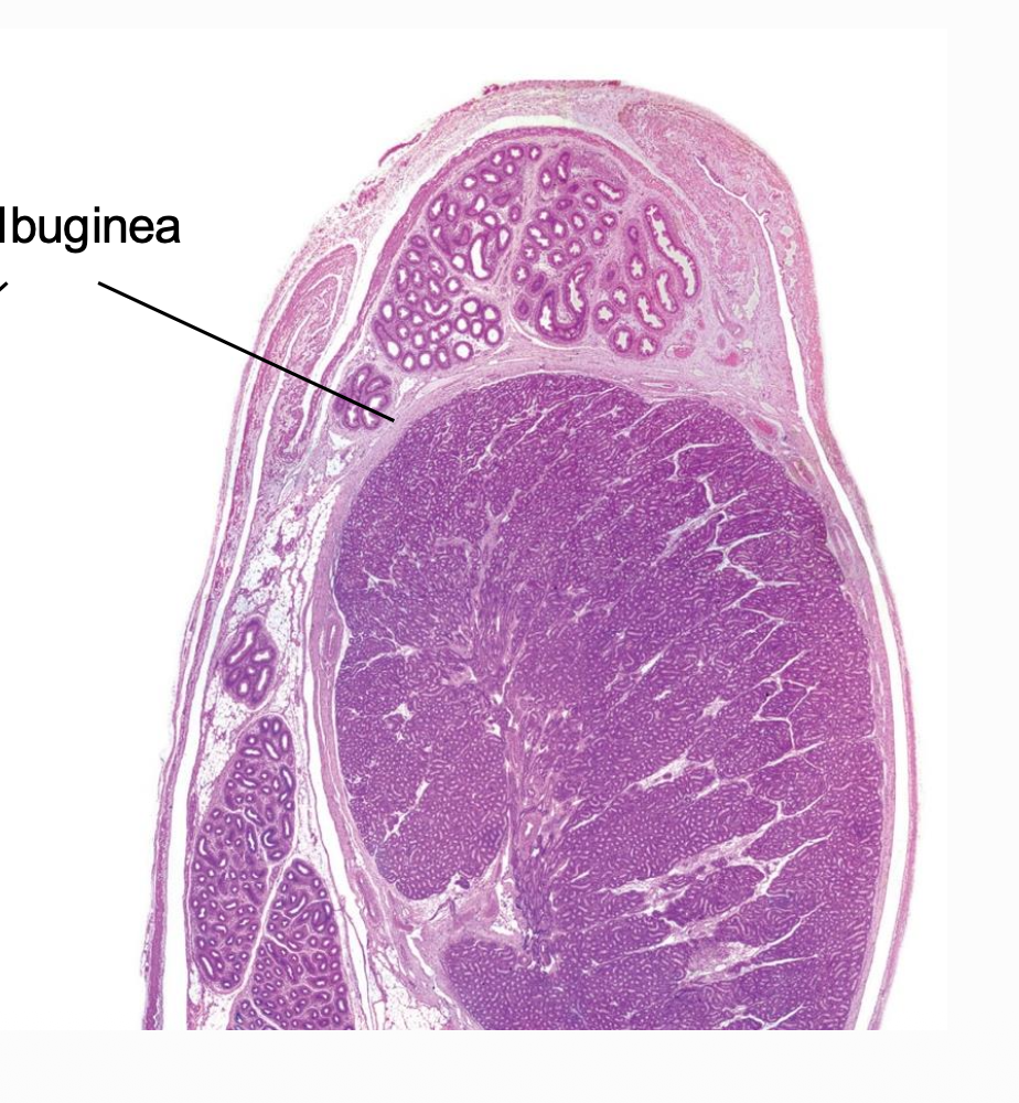 - Lokaliserade i lucker bindväv mellan tubuli seminiferi; stora polygonala celler med eosinofil cytoplasma och rikligt med SER.