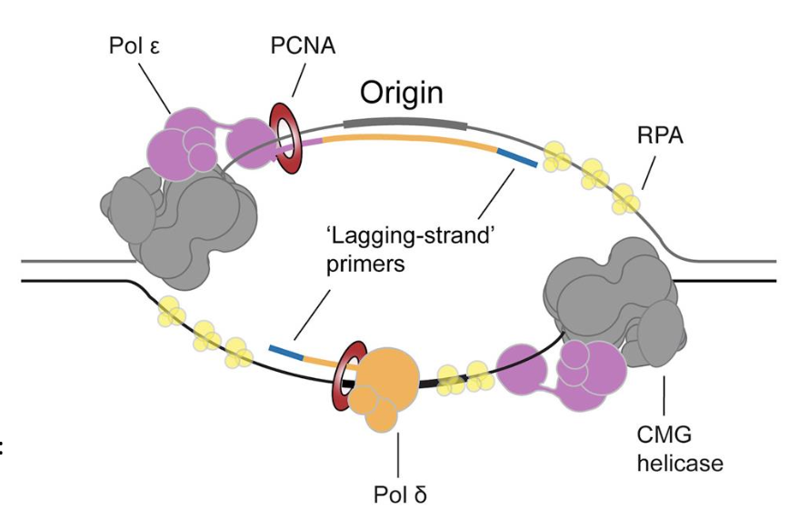 Kräver höga nivår av cyklinberoende kinas (CDK) för att kunna bilda CMG-helikaset
