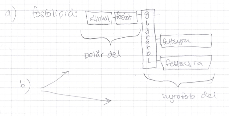 Svar på ritpapper: fosfolipid med alkohol + fosfat (polär del) kopplad till