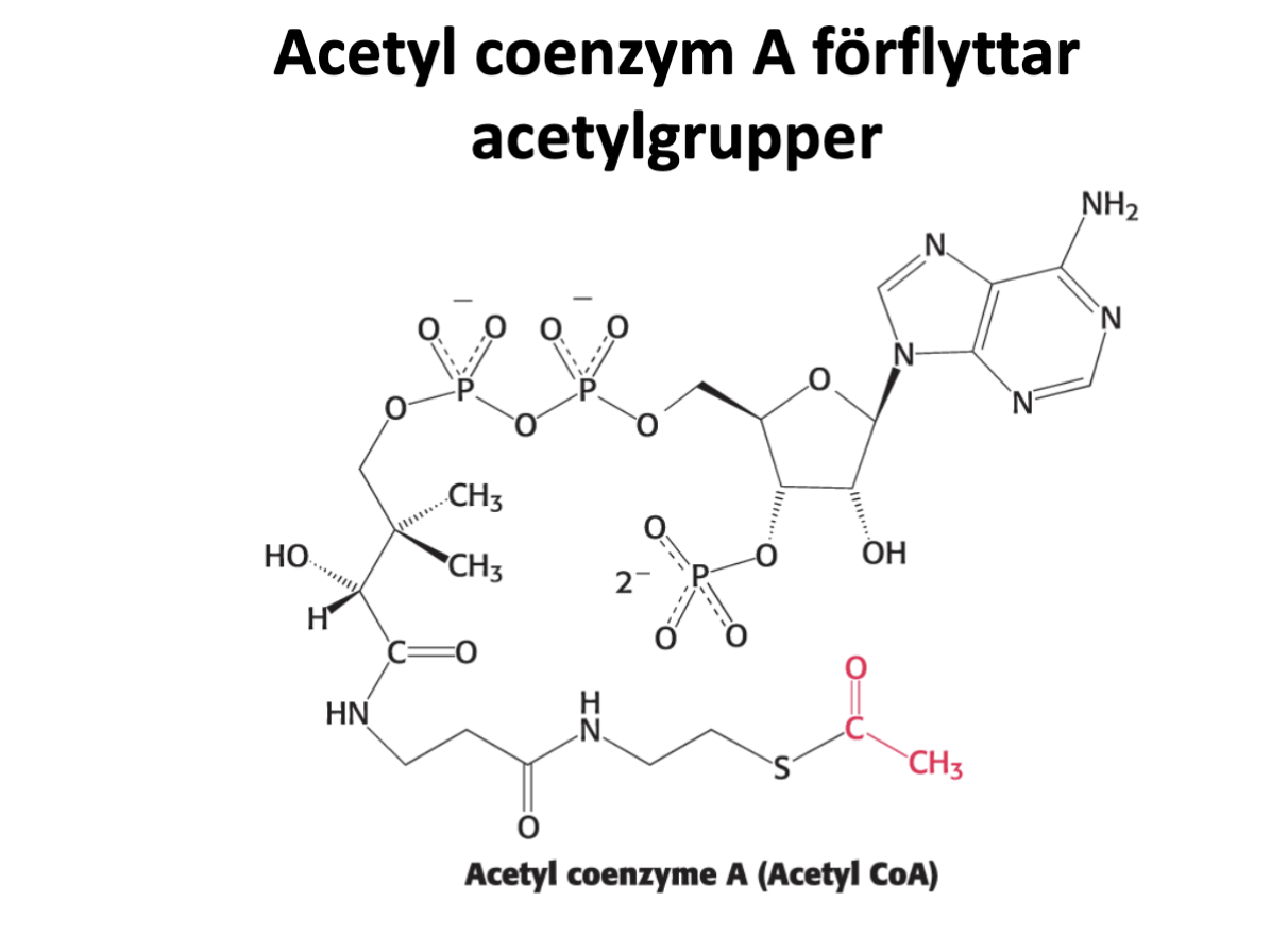 Bärarare av acylgrupper. Har en restgrupp. Kommer från pantotenat (vitamin ) Reaktiv sulfhydrylgrupp, HS-
