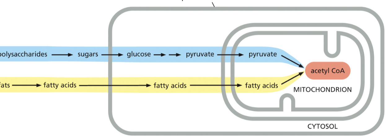 Acetyl-CoA kan bildas från fetter, kolhydrater och proteiner