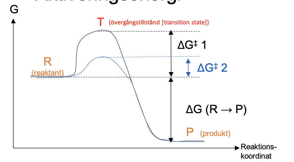 Aktiveringsenergin kan sänkas med en katalysator som en enzym.