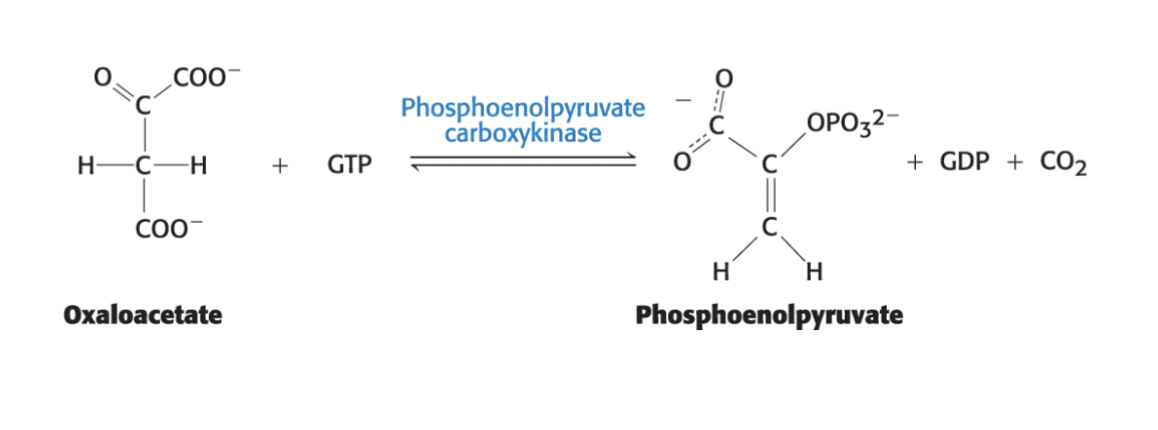 - Dekarboxylerar och fosforylerar oxalacetat → fosfoenolpyruvat (PEP).